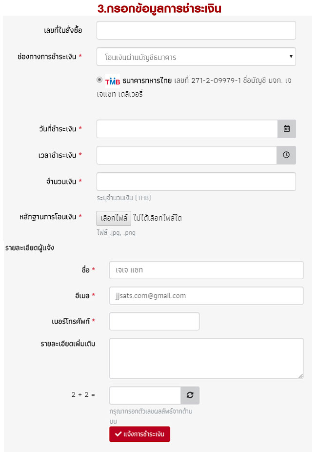 1.แจ้งผ่าน Line : @jjsats.com โดยส่งรายละเอียดการชำระเงิน และ อีเมลที่ใช้สมัคร